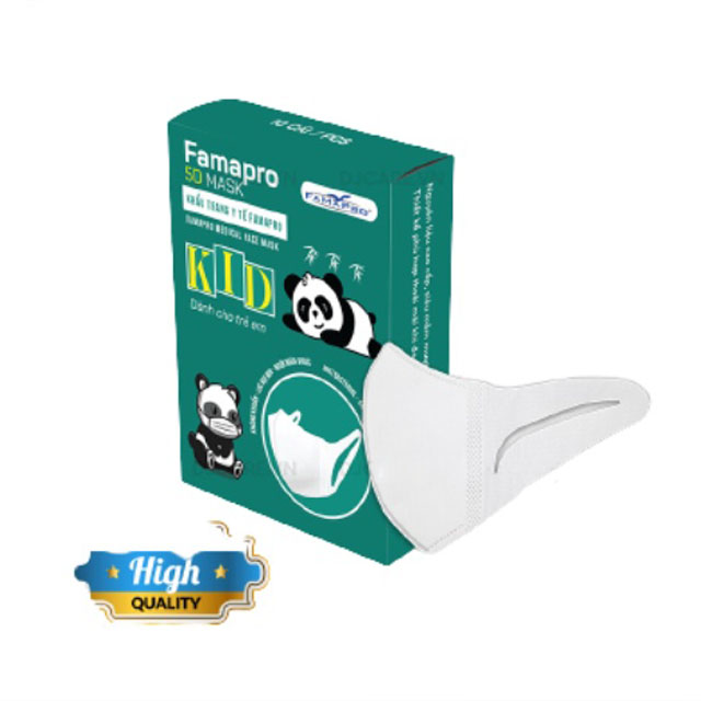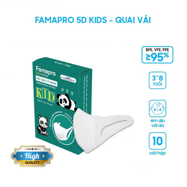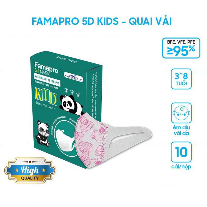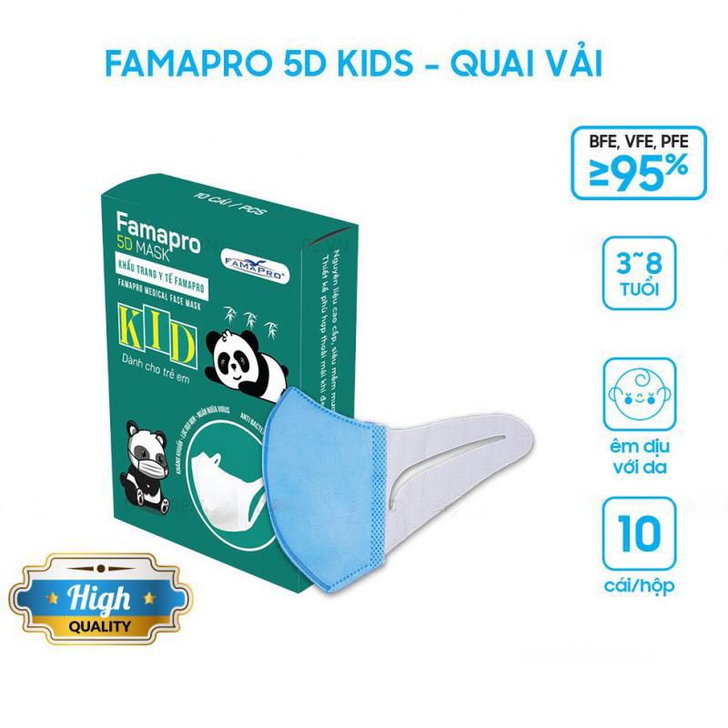 [5D MASK KID QUAI VẢI- HỘP 10 CÁI] Khẩu trang y tế trẻ em kháng khuẩn 3 lớp Famapro