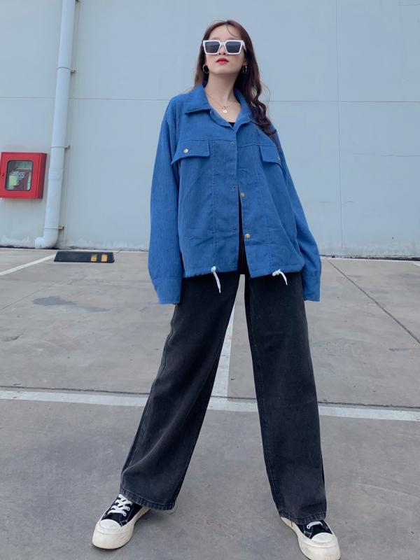 • Áo Khoác Nhung Có Cổ Sơ Mi