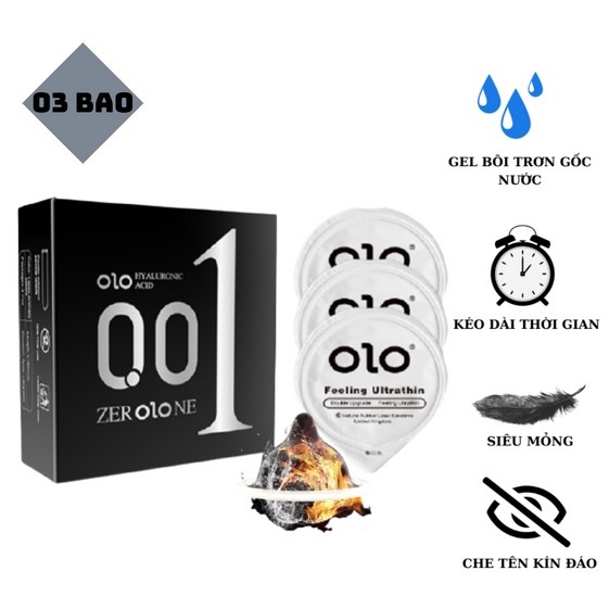 Tên sản phẩm: Bao Cao Su Siêu Mỏng Truyền Nhiệt Tăng Độ Chân Thật, Gel Bôi Trơn Gốc Nước Tăng Khoái Cảm Khi Yêu – OLO – Hộp 03 bao