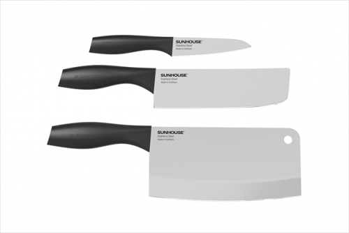 Dao là dụng cụ nhà bếp không thể thiếu trong mỗi gia đình. Việc sở hữu một bộ dao tốt, sắc bén sẽ giúp cho công việc của người nội trợ trở nên nhẹ nhàng hơn. Bộ dao Eco Family SUNHOUSE bao gồm: dao thái, dao gọt, dao chặt với kích cỡ khác nhau, sẽ giúp người nội trợ sử dụng cho nhiều mục đích bếp núc khác nhau thật dễ dàng. Bộ dao được làm từ chất liệu cao cấp, cùng thiết kế sang trọng, sẽ làm tăng nét đẹp tinh tế cho không gian phòng bếp.