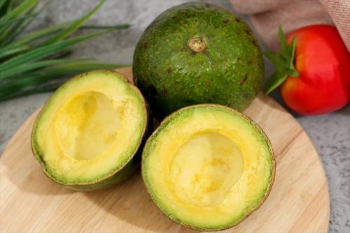 Quả bơ Booth có hình tròn đều, vỏ khi già có màu xanh hơi ngả vàng, da căng nhưng không bóng, vỏ có nhiều vân xù xì.