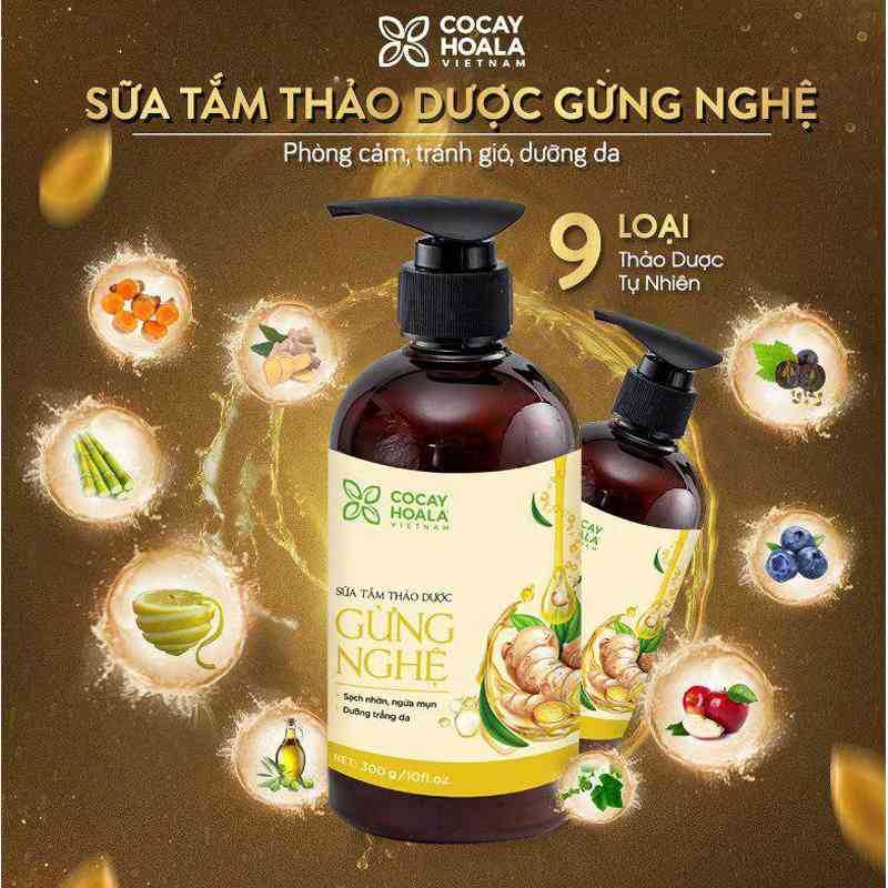 Sữa tắm thảo dược gừng nghệ Cỏ cây hoa lá – Nguồn dược liệu quý nuôi dưỡng làn daNgày nay, các sản phẩm có chiết xuất từ thiên nhiên ngày càng được nhiều người tiêu dùng ưa chuộng bởi công dụng ngày càng tốt và lành tính cả chúng. Sữa tắm thảo dược gừng nghệ Cỏ cây hoa lá là một sản phẩm không thể bỏ lỡ khi sử nhắc đến các sản phẩm dược liệu thiên nhiên này. Thành phần trong gừng giúp giữ ấm cơ thể cùng các hoạt chất kháng viêm trong nghệ giúp bảo vệ làn da khỏi các tác nhân của môi trường bên ngoài, hạn chế viêm da cơ địa do thời tiết, thay đổi khí hậu. Thành phần thiên nhiên có sự kết hợp của công nghệ hiện đại giúp chắt lọc những tinh chất tốt nhất giữ lại trong sản phẩm. Các vết thâm của phụ nữ sau sinh, rạn da sẽ dần được cải thiện khi dùng sữa tắm. Bên cạnh đó, hương thơm dịu nhẹ cũng là một điểm cộng cho sản phẩm giúp giảm stress, thư giãn tinh thần.