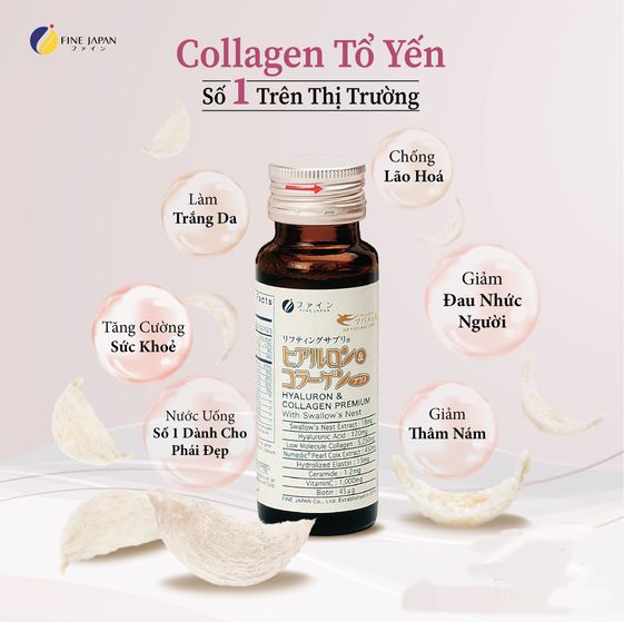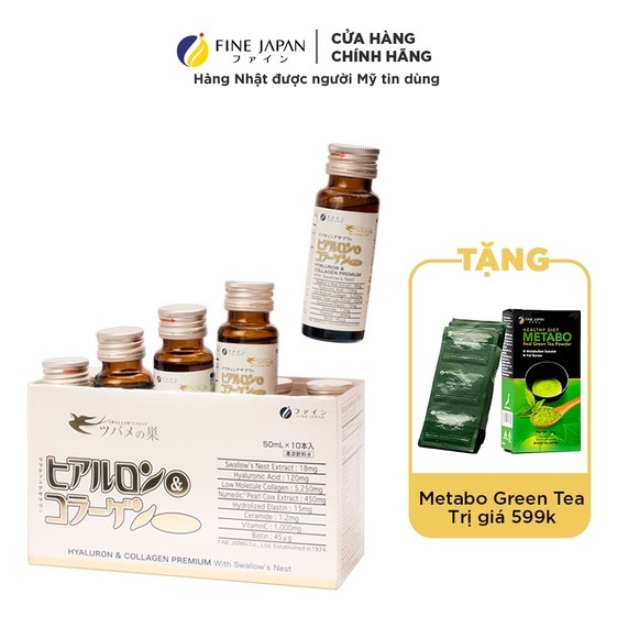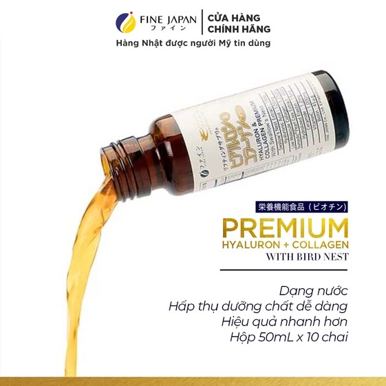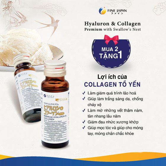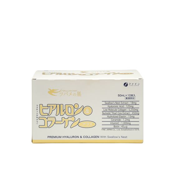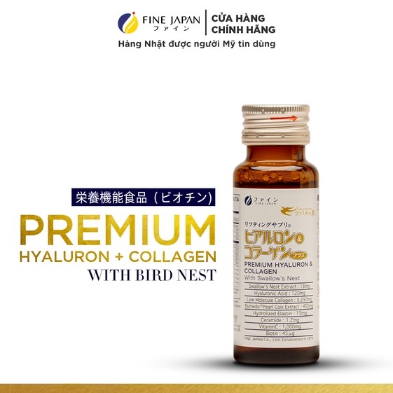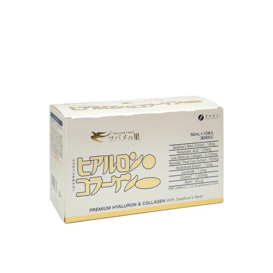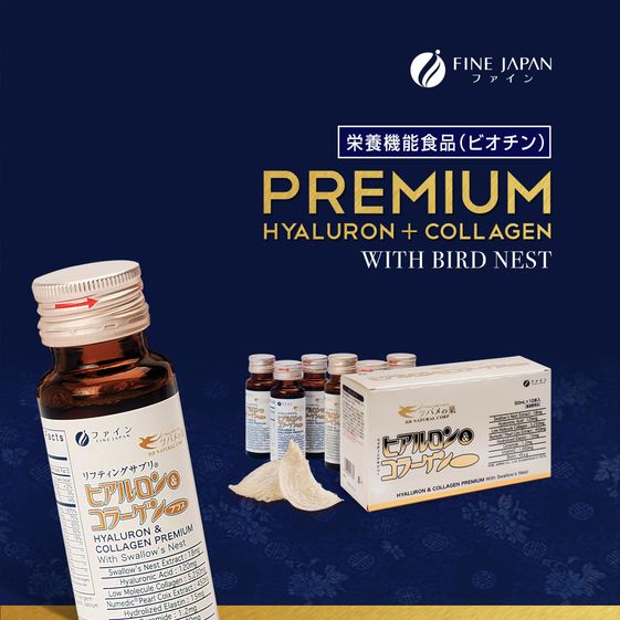Fine Hyaluron Collagen & Premium Bird Nest là một trong số ít sản phẩm collagen nước, có sự kết hợp đặc biệt của Collagen, Hyaluronic Acid và tinh chất Yến sào tạo nên Collagen Tổ Yến thượng hạng. Đây là một sản phẩm nước uống Collagen Nhật có công thức kết hợp hoàn toàn mới dành cho sức khỏe và sắc đẹp từ Fine Japan, được nghiên cứu và sản xuất 100% tại Nhật Bản. Cùng với collagen, yến sào chứa hàm lượng protein vượt trội (45-55%) với 18 loại axit amin cần thiết giúp tái tạo tế bào và bồi bổ sức khỏe toàn diện, là sản phẩm dưỡng nhan tiện dụng, một loại nước uống đẹp da hữu hiệu cho phụ nữ.