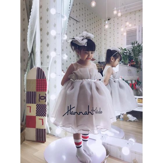 Đầm công chúa ngực xếp li do Hannah Kids tự thiết kế nên mẫu mã độc lạ, đường may mũi chỉ đẹp, chắc chắn, các mẹ yên tâm khi mua cho bé.