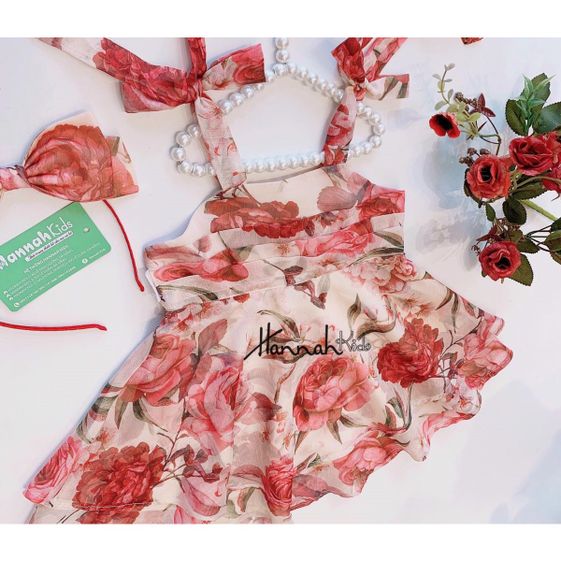 Đầm voan tơ ngực xếp hai tầng được thiết kế với áo 2 dây cột nơ có thể điều chỉnh, form xòe nhẹ, tùng váy hai lớp họa tiết hoa hồng dịu dàng rất xinh. Chất vải voan mềm mịn, mặc mát, sang trọng.