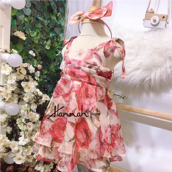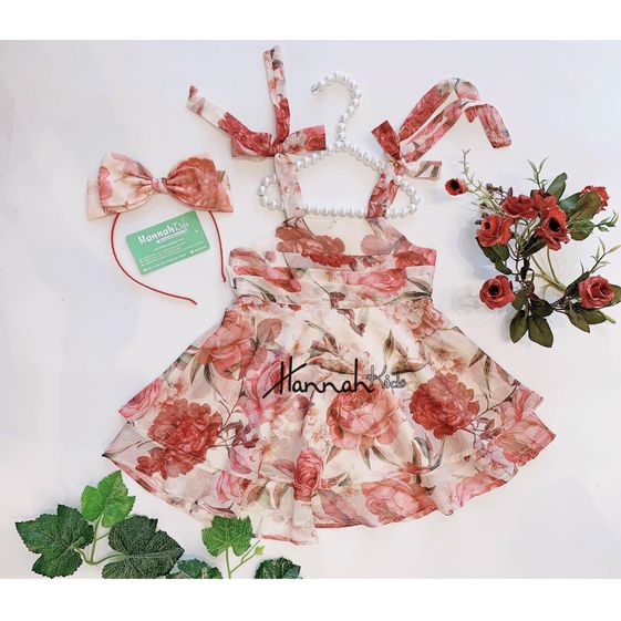Tên sản phẩm: Đầm Voan Tơ Ngực Xếp Hai Tầng Vai Nơ – Hannah Kids
