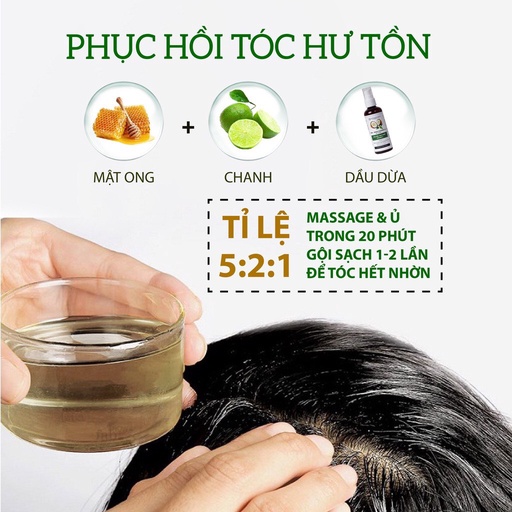 Dưỡng tóc: Trước khi gội đầu 15 phút, thoa một ít dầu dừa lên tóc và massage nhẹ nhàng, giúp tóc trở nên bóng mượt hơn.