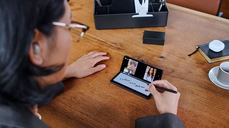 Galaxy Z Fold3 được tương trợ thêm bút S-Pen cho bạn thoải mái thực hiện nhiều tác vụ trên màn hình lớn. Bạn có thể dùng để viết, vẽ, ghi chú các thông tin quan trọng nhanh chóng, dễ dàng hoặc chia màn hình thành nhiều cửa sổ ứng dụng tiêu dùng tiện lợi hơn.