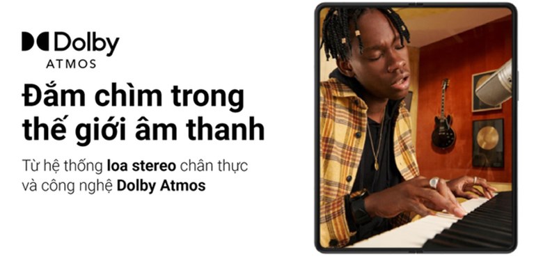 Samsung Galaxy Z Fold3 sở hữu cụm loa kép Stereo đi kèm công nghệ Dolby Atmos với âm lượng cao tạo hiệu ứng đa kênh sống động cho bạn trải nghiệm âm thanh lớn, rõ ràng, chi tiết đến từng âm sắc để bạn đắm chìm trong không gian giải trí bất tận.