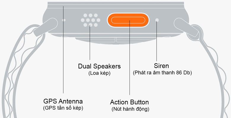 – Còi báo động 86Db để thu hút sự chú ý (86-decibel Siren to attract attention): chỉ có trên Apple Watch Ultra.