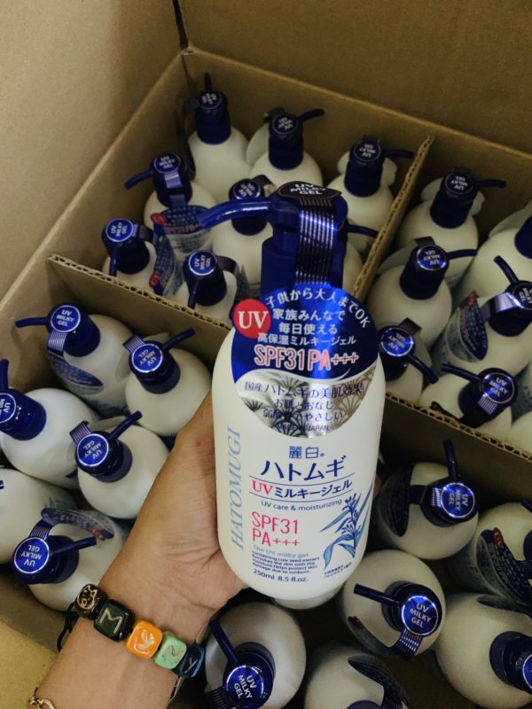 – Sữa Dưỡng Thể Nâng Tông Da, Chống Nắng Hatomugi UV Care & Tone Up SPF31/PA+++. Có thành phần chính có trong sữa dưỡng thể Hatomugi là hạt ý dĩ chứa hàm lượng lớn acid béo và vitamin giúp nuôi dưỡng, cân bằng làn da, giảm kích ứng, giảm sưng viêm hiệu quả. Ngoài ra, thành phần hạt Coix còn có tác dụng thúc đẩy quá trình sản sinh chất giữ ẩm tự nhiên, giúp da luôn căng mọng, khỏe mạnh, mịn màng và hạn chế tình trạng xuất hiện nếp nhăn trên da.