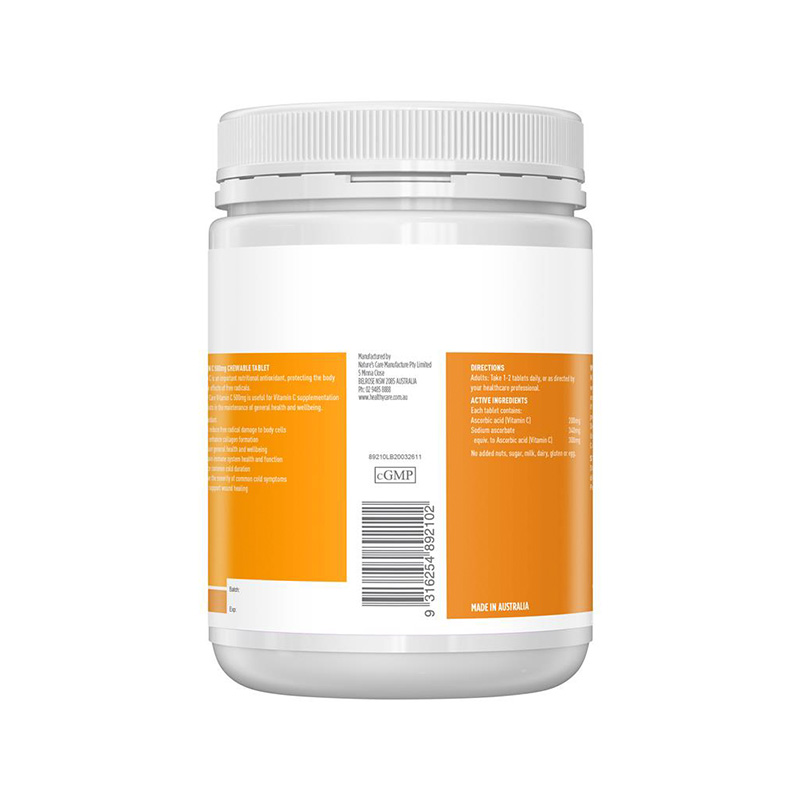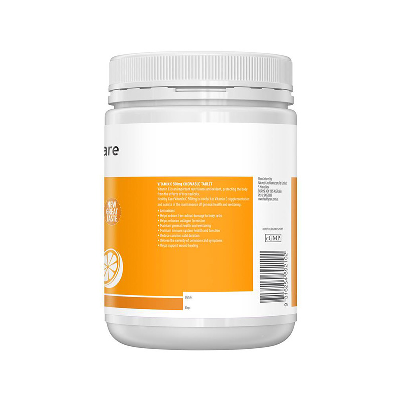 Healthy Care Viên nhai mềm bổ sung vitamin C Vitamin C Chewable Tablet 500 viên – Sản phẩm giúp tăng cường đề kháng, hỗ trợ sức khỏe và làm đẹp da
