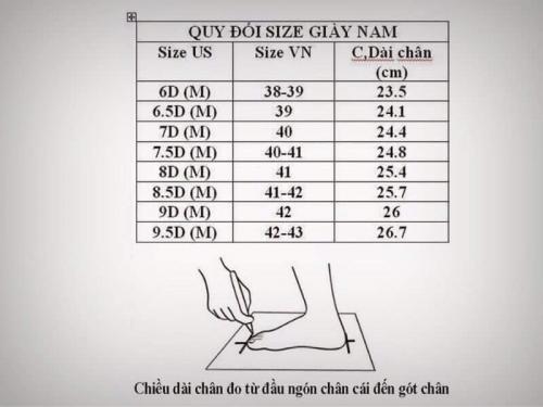 ⚡ Bảng đo size: chiều dài chân (cm)