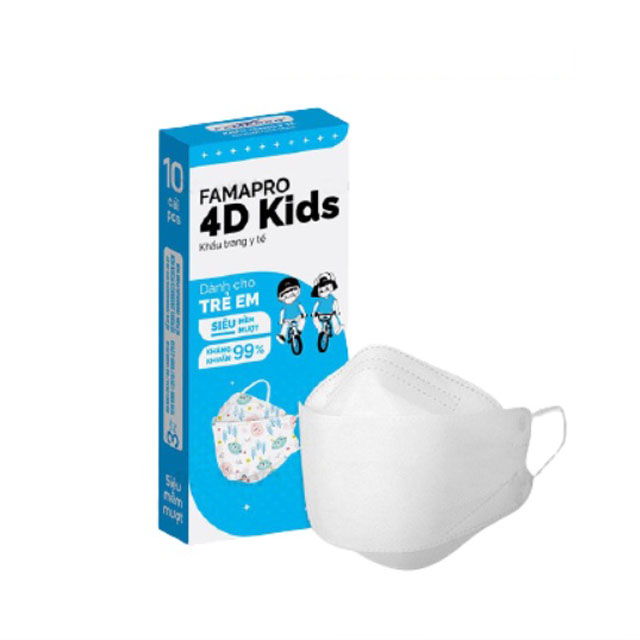 Khẩu trang y tế cao cấp trẻ em kháng khuẩn 3 lớp Famapro 4D Kids Thiết kế thông minh có nẹp mũi dạng ấn có thể giúp ôm khít sống mũi, giảm sương mù trên kính mắt.