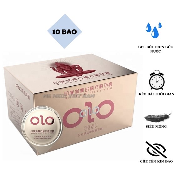 Tên sản phẩm: [Hộp] Bao Cao Su Siêu Mỏng, Gân Gai Chạm Là Phê, x2 Gel Bôi Trơn Gốc Nước, Dầu Thần Ấn Độ Kéo Dài Thời Gian Yêu – OLO – 10 Cái/Hộp