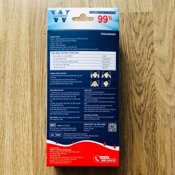Khẩu trang y tế Wakamono với chất liệu vải không dệt chất lượng cao, lớp vi lọc (lọc bụi & vi khuẩn) an toàn cho sức khỏe.