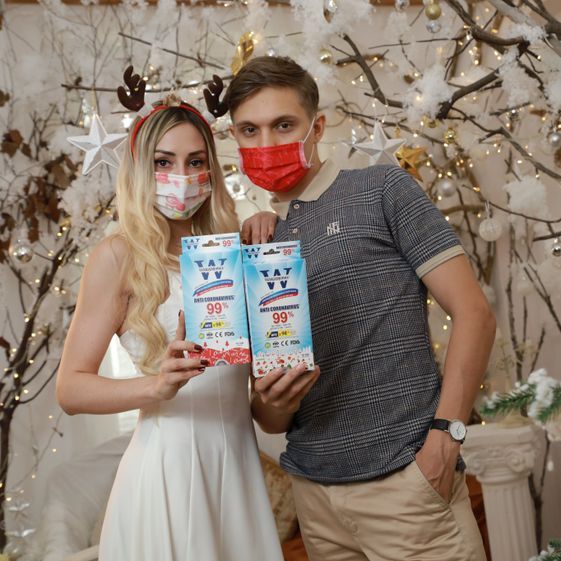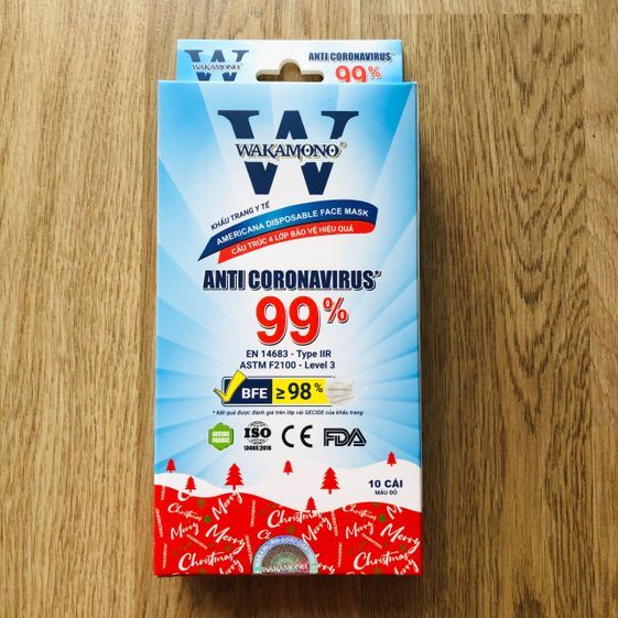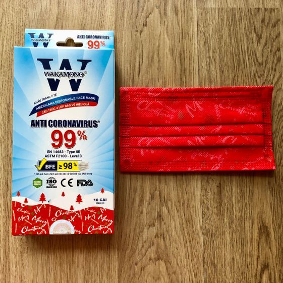 Tên sản phẩm: [Hộp] Khẩu trang Wakamono (4 Lớp, Hộp 10 Cái) – Mẫu Giáng Sinh (Màu Đỏ)