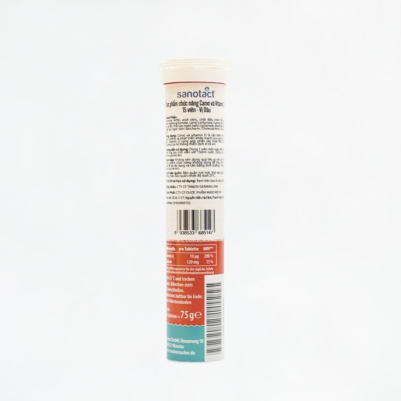 Thành phần chính: Vitamin D3 10μg, Canxi 120mg (bổ sung dưới dạng canxi carbonate).