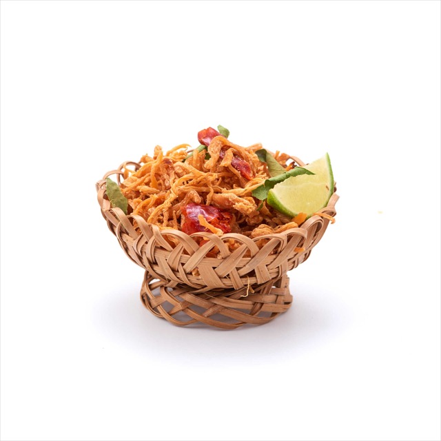 Khô gà lá chanh nhà Vị được làm từ nguyên liệu chính là thịt gà. Từng sợi thịt gà được xé rất đều tay và có màu vàng óng ánh đặc trưng, rất kích thích vị giác. Khi ăn mọi người sẽ cảm nhận được từng sợi thịt gà hòa quyện với sự chua thanh của lá chanh cùng với một chút cay của ớt và sả cùng với sự ngọt ngào của thịt gà. OMG nghe tới đây là muốn ăn lắm luôn.