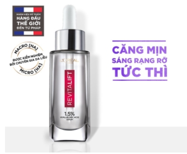 Dưỡng chất L’oreal Paris Revitalift HA đậm đặc 30ml với sự kết hợp không chỉ 1 mà đến 2 loại Hyaluronic Acid ưu việt sẽ mang đến giải pháp chăm sóc da hiệu quả, cho làn da căng mịn và sáng da tức thì. Với Revitalift da sẽ có sự thay đổi rõ rệt, mang đến vẻ ngoài rạng rỡ cho bạn.