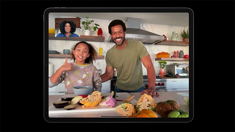Ở mặt trước, máy tính bảng iPad Pro M1 2021 12.9 inch Wifi 256GB Xám MHNH3ZA/A trang bị camera độ phân giải cao 12MP và đặc biệt là góc siêu rộng lên tới 122 độ. Cụm cảm biến nhận diện khuân mặt FaceID, tương trợ nhiều tính năng chụp sefie ấn tượng. Tính năng Center Stage hoàn toàn mới, hệ thống camera sẽ tự động nhân diện khuôn mặt của chủ thể để lia theo tránh tình trạng chủ thể bị out nét, tự động phóng to hoặc thu nhỏ cho thích hợp với không gian giúp bạn luôn nằm ở trung tâm của khung hình khi gọi video. Khi phát hiện có người khác tham gia thì camera sẽ tự động mở rộng góc nhìn để thu trọn cả những người xung quanh vào khung hình. Ngoài ra camera TrueDepth này cũng giúp mở khóa bằng nhận diện khuôn mặt trên iPad Pro với tốc độ nhận diện nhanh chóng, chính xác, an toàn.