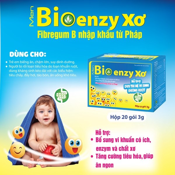 Men Bioenzy Xơ giúp bổ sung vi khuẩn có ích, enzym và chất xơ. Hỗ trợ duy trì hệ vi sinh đường ruột, tăng cường tiêu hóa, giúp ăn ngon, giảm rối loạn tiêu hóa do loạn khuẩn đường ruột.
