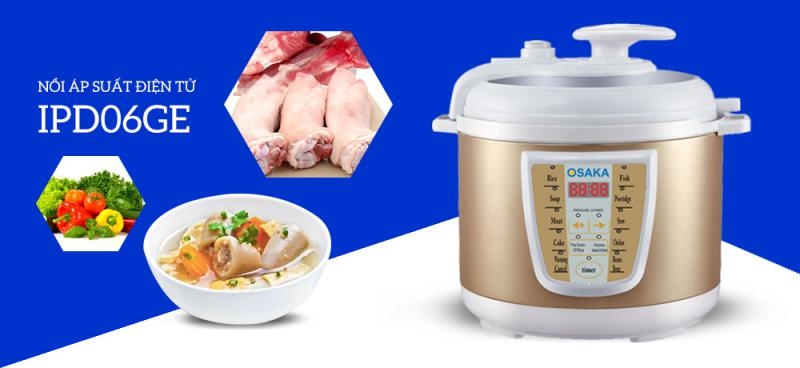 NỒI ÁP SUẤT ĐIỆN TỬ OSAKA IPD06GE dung tích 06 lít (HẦM THỊT KHÔNG ĐỖ NƯỚC)