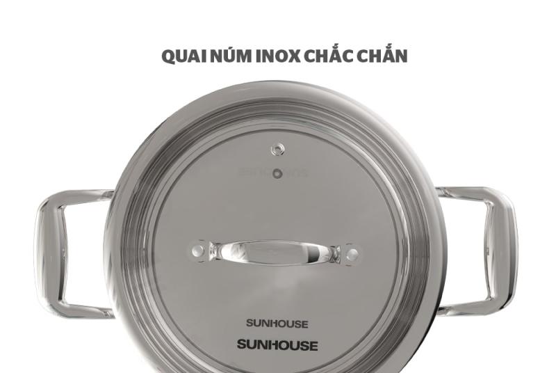 Quai nồi: Inox Núm cầm: Inox Vung nồi: Kính cường lực trong suốt bo viền inox