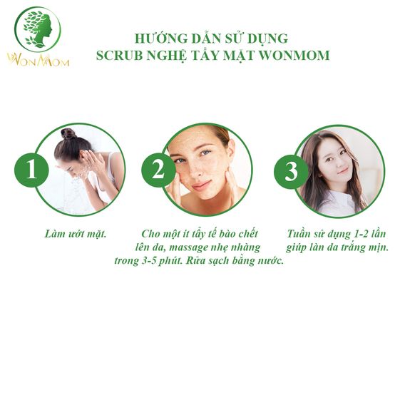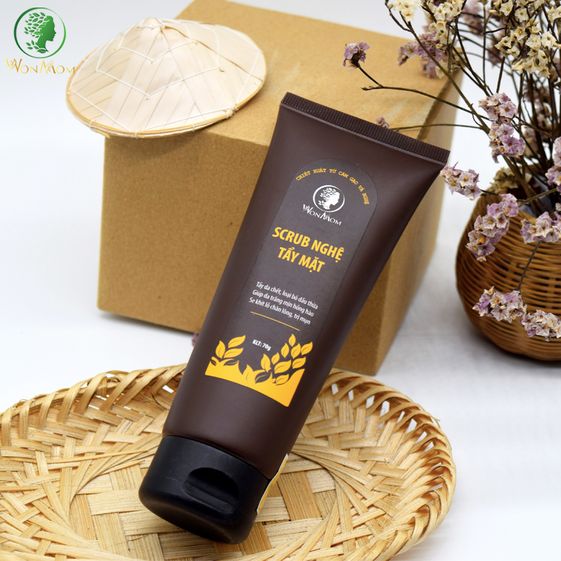 Scrub nghệ tẩy mặt Wonmom là 1 trong số những sản phẩm bán chạy nhất với nguyên liệu tự nhiên, an toàn cho sức khỏe: tinh nghệ, dầu dừa, jojoba, cám gạo, hạt jojoba…