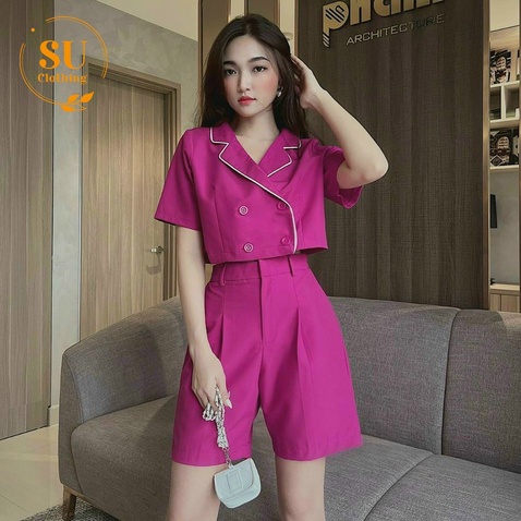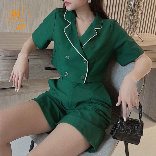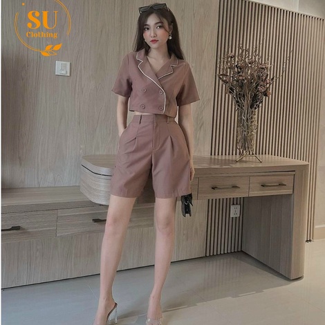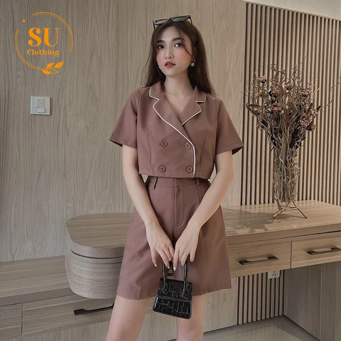 Sét Áo Croptop cổ vest phối viền trắng kèm quần short Su Clothing với chất tuyết mưa dày dặn, mềm mại, thoáng mát. Thích hợp đi chơi , dạo phố, đi làm, ….