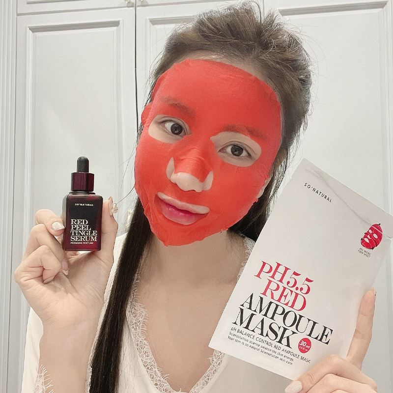 Combo 5 chiếc mặt nạ So’Natural dưỡng ẩm cân bằng da pH 5.5 Red Ampoule Mask 25g – Dịu nhẹ an toàn cho làn da của bạn