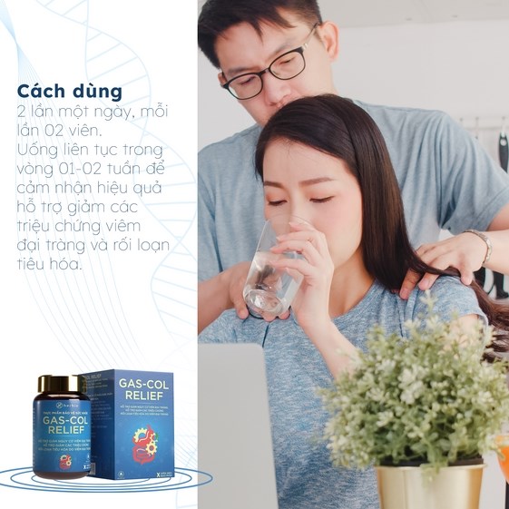 Sự kết hợp bài thuốc cổ phương (Chỉ truật bạch bá lá dung thang gia giảm) và các Enzyme nhập khẩu cao cấp (Immune Gamma, Pepsin và Piperin) tạo nên sản phẩm viên uống hỗ trợ viêm đại tràng Gas-col Relief hiệu quả ngay trong tuần đầu sử dụng. Đồng thời các enzyme Immune Gamma, Pepsin và Piperin cũng rất hiệu quả cho người bị viêm dạ dày, ợ chua, trào ngược, người đã từng nhiễm khuẩn HP.