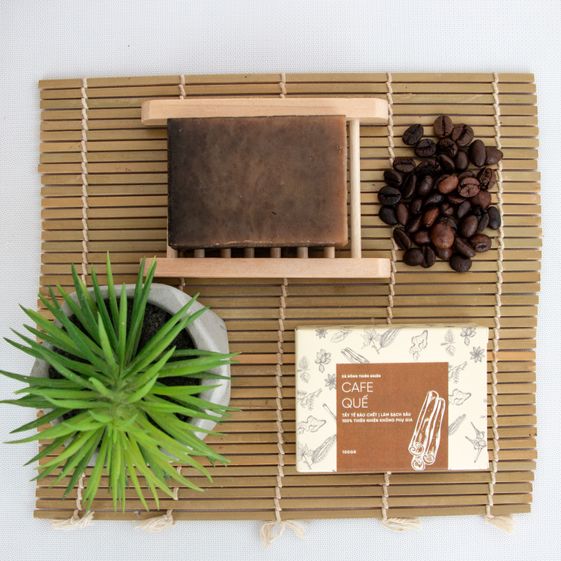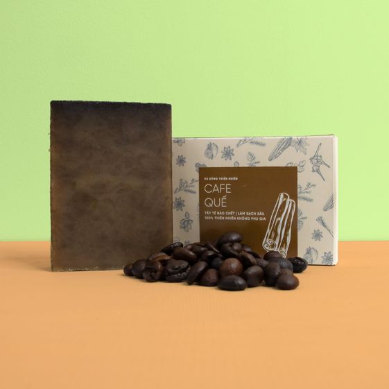Thành phần: Phôi xà bông từ dầu dừa hữu cơ, dầu cọ, nước khoáng Sao Sa, Citric (Chanh), tinh dầu quế, cà phê